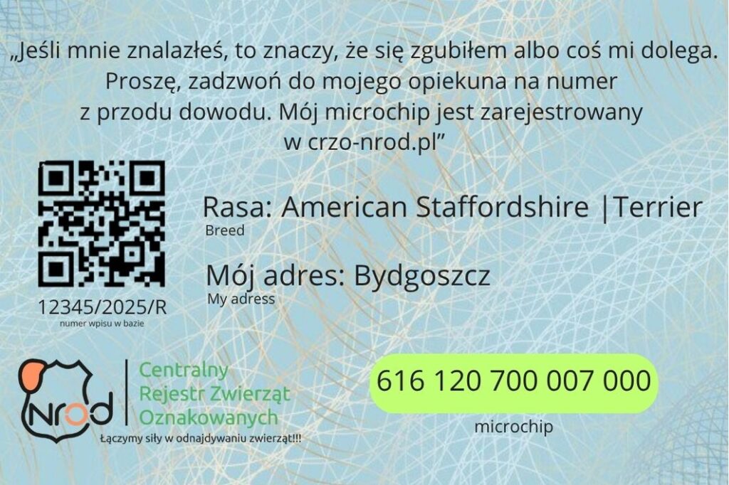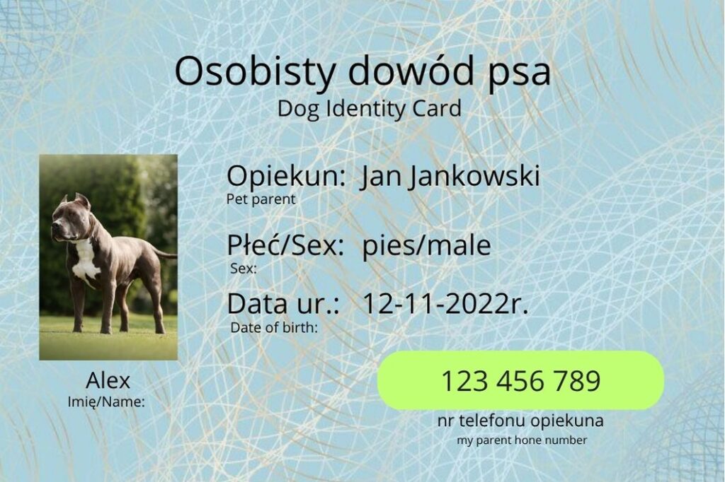 Personalizacja sprawia, że dowód jest niepowtarzalny i dokładnie dopasowany do danego psa lub kota.